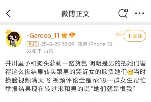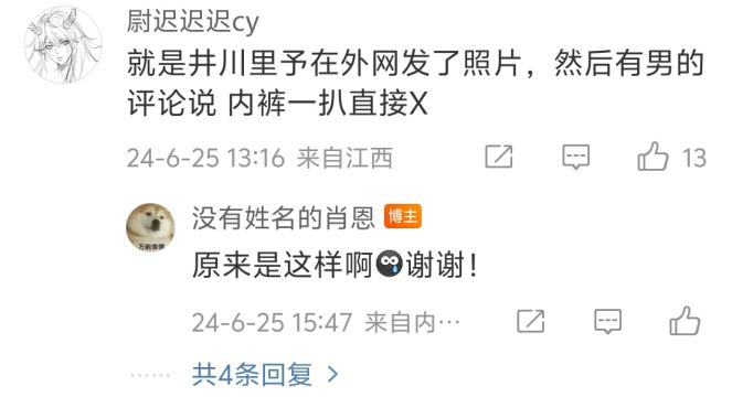 就是井川里予在外网发了照片,然后有男的评论说 内裤一扒直接X